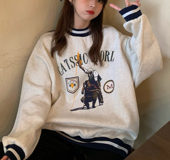 Autumn Letter Cartoon Print Sweatshirts Women Hoodies 2023 New Loose Casual Cute Cotton O Neck Tops Warm Long Sleeve Female
