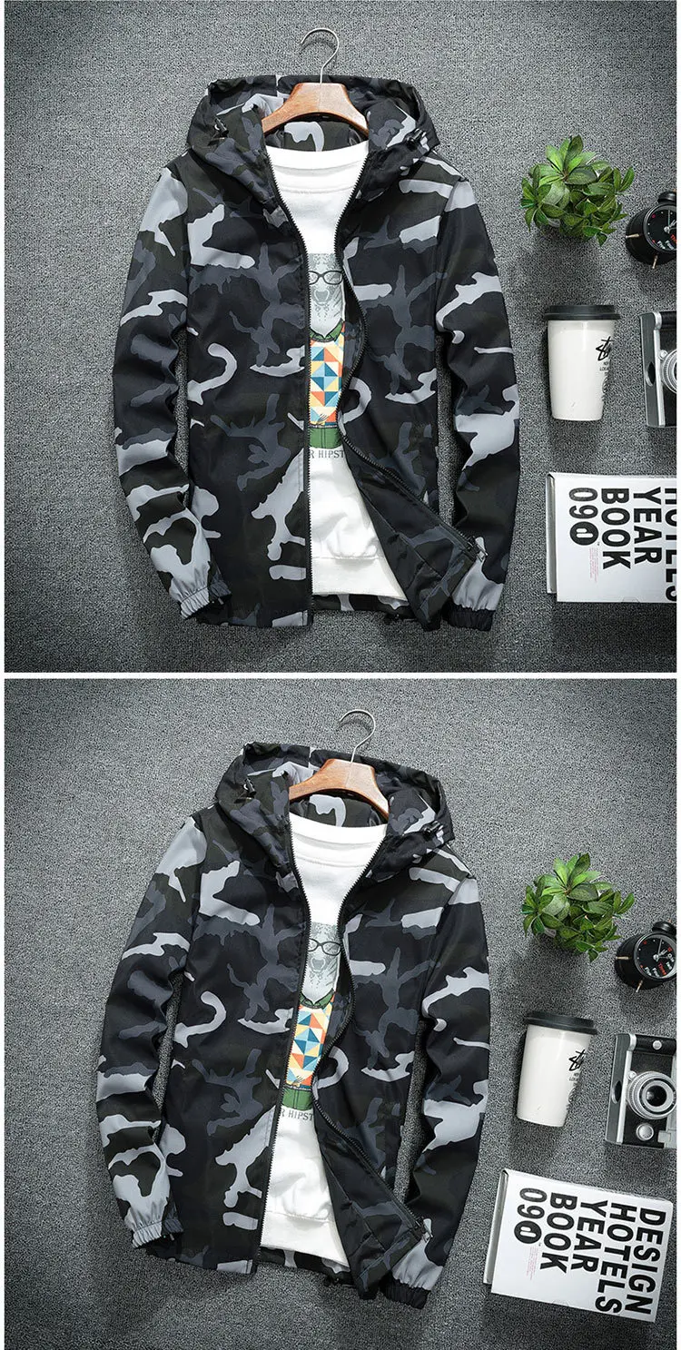 Autumn Men Women Hooded Jacket Fashion Hip Hop Jacket Youth Boys Printing College Casual Coat Windbreaker Zipper Camouflage
