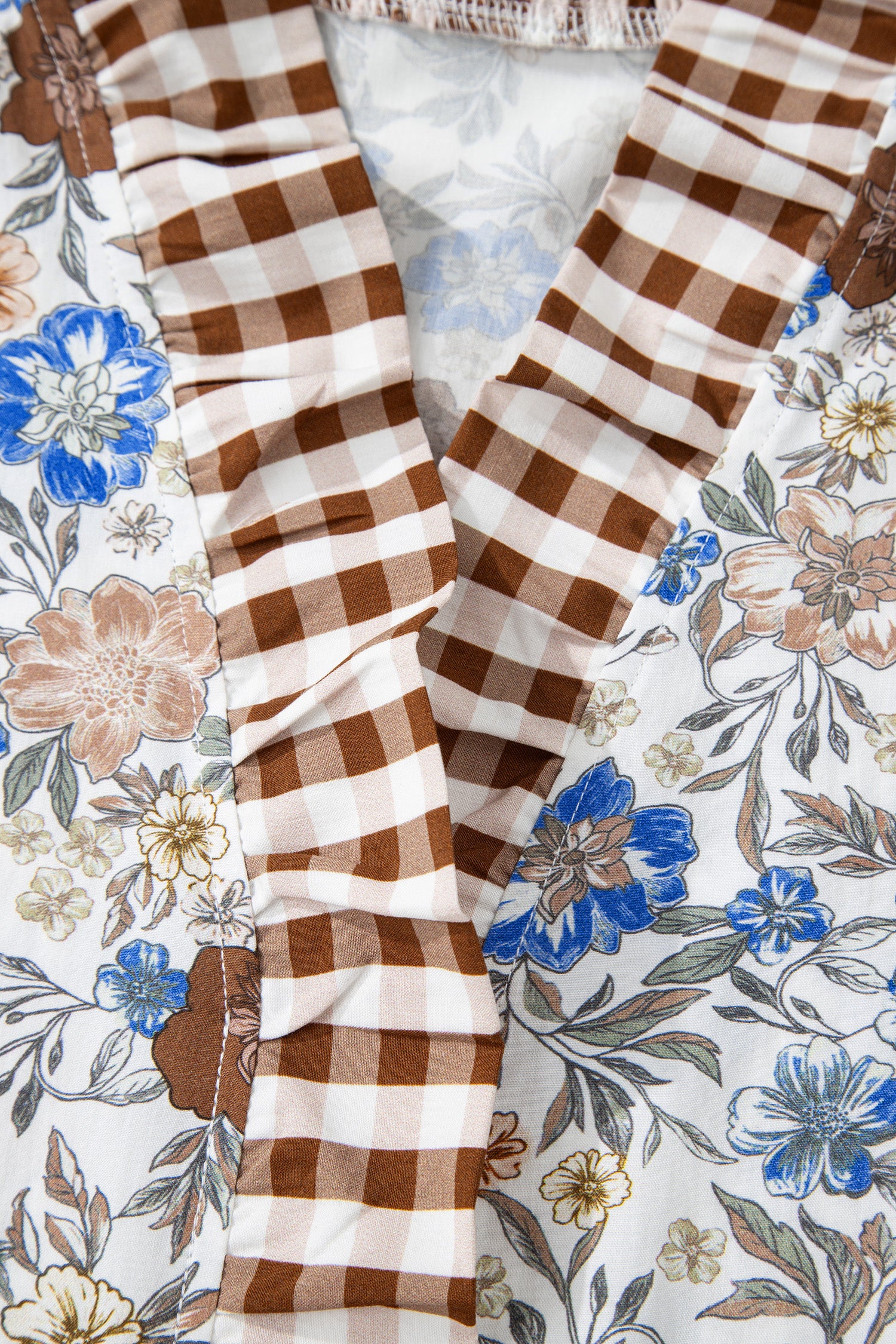 - Plaid frilled trim adds contrast chic detail to this fall floral blouse.