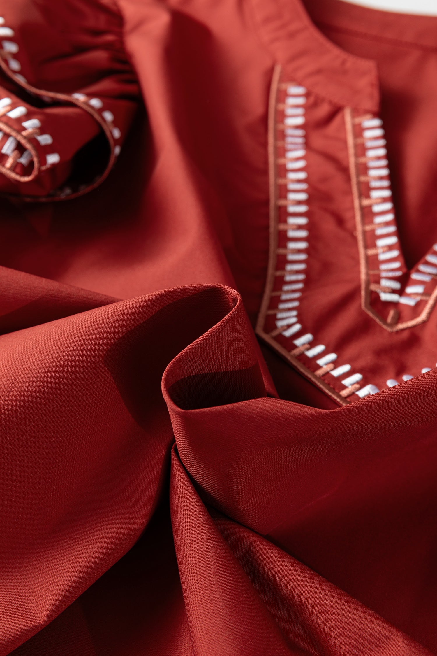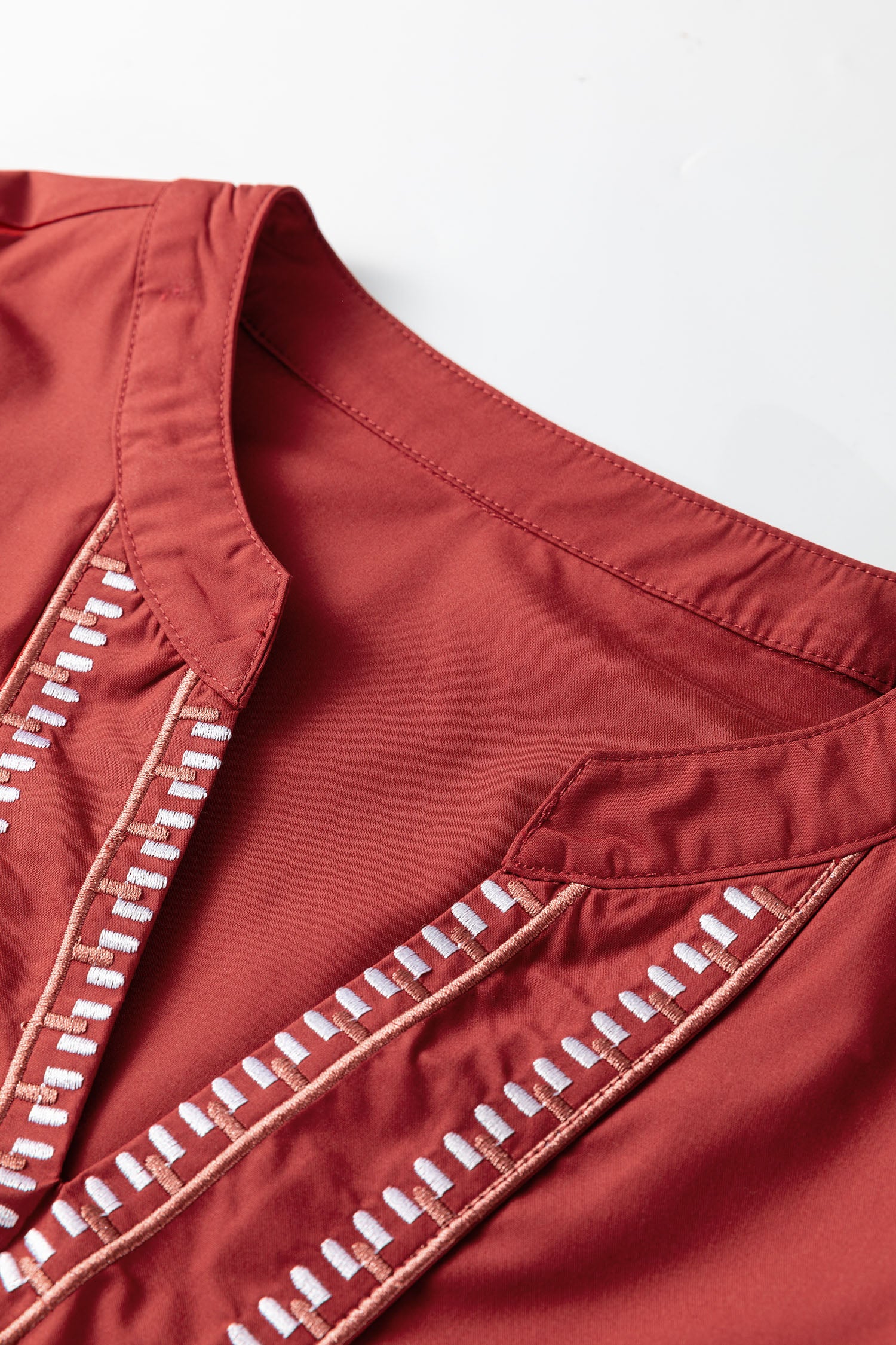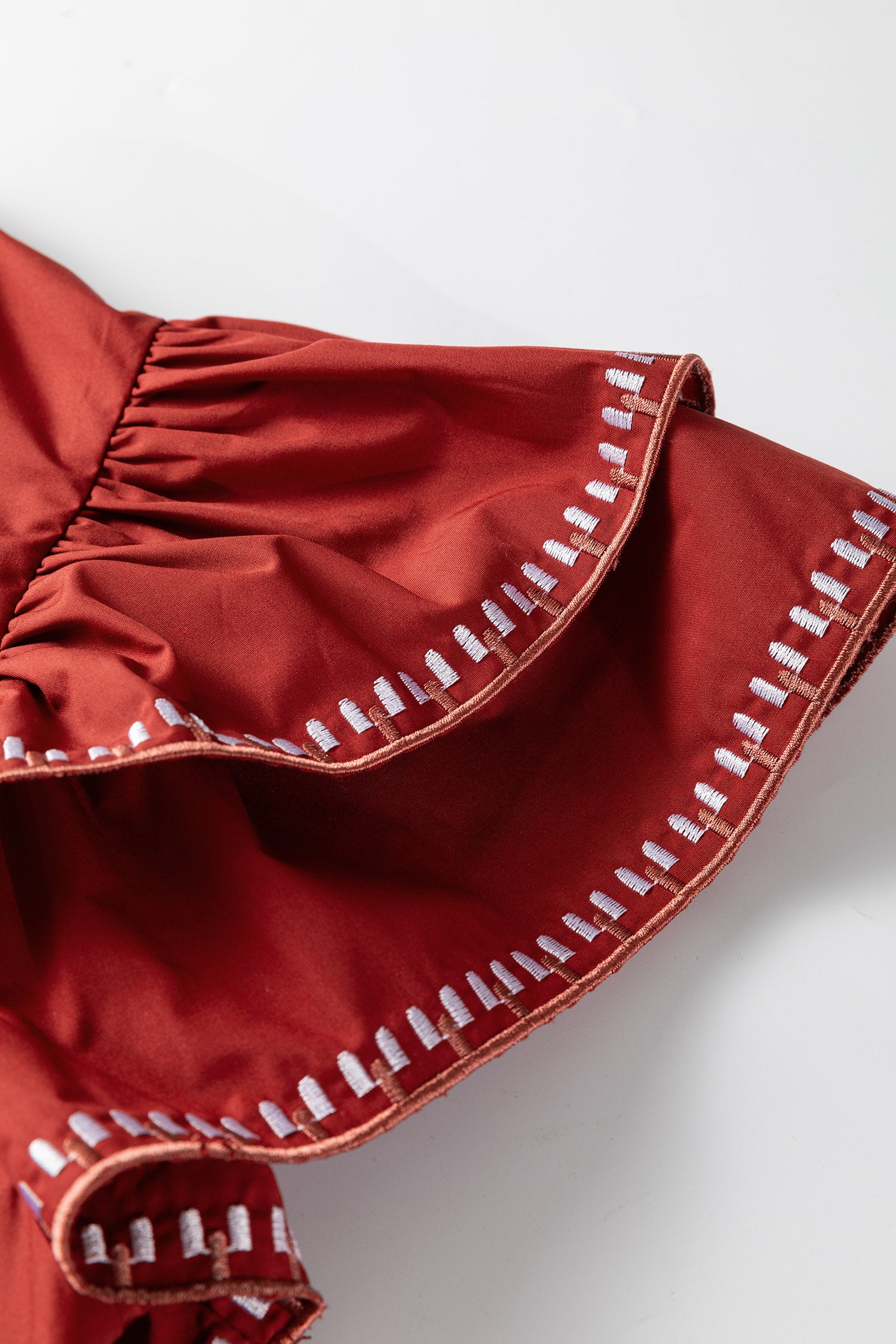 Clay Contrast Trim Flutter Sleeve V Neck Blouse