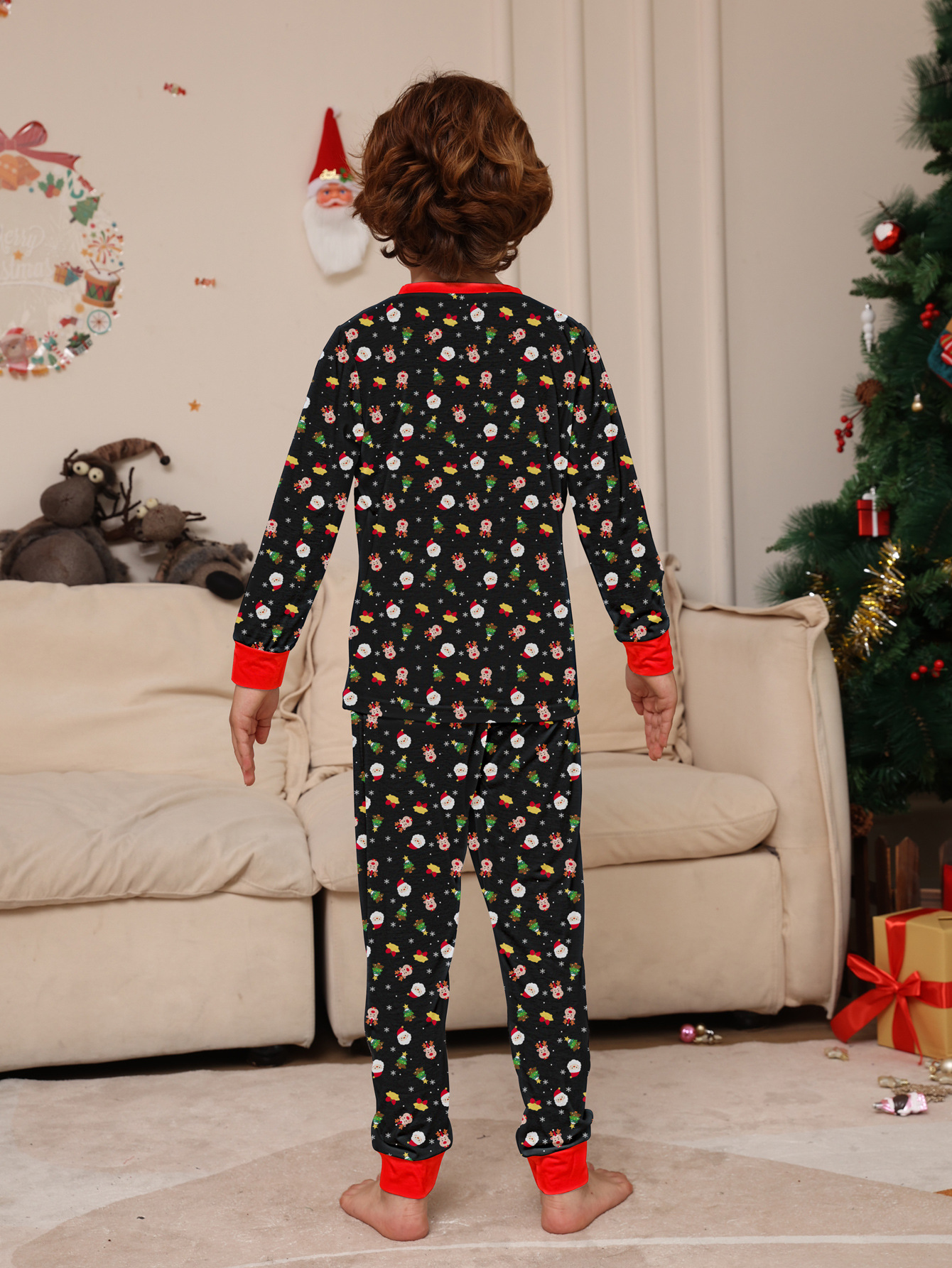Festive Design:Featuring a festive print of Santa Claus surrounded by flowers, this set adds a touch of holiday spirit to your family's outfit.