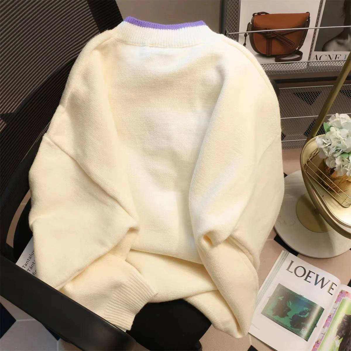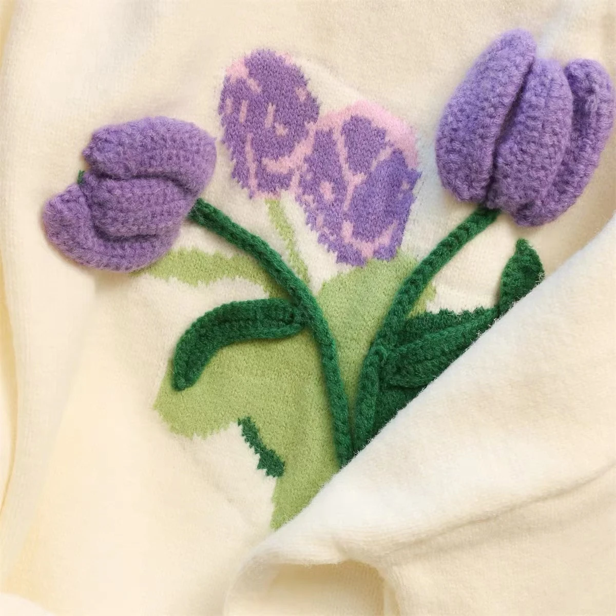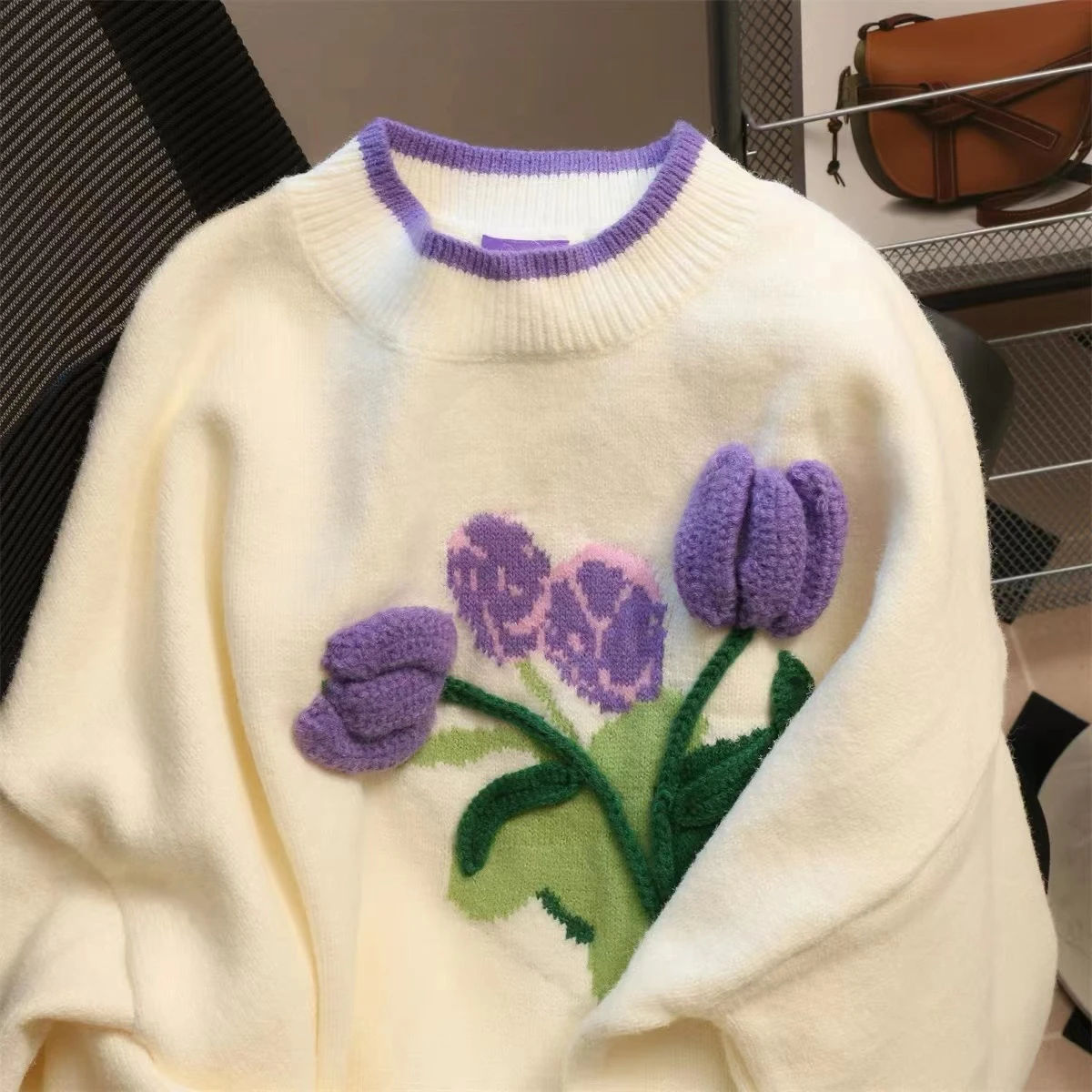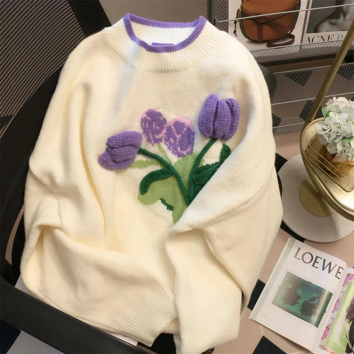Jielur Fashion Delicate Tulip Flower Apricot Sweater Women Autumn Winter Warm Loose Soft Knitted Sweaters Female Pullover S-L