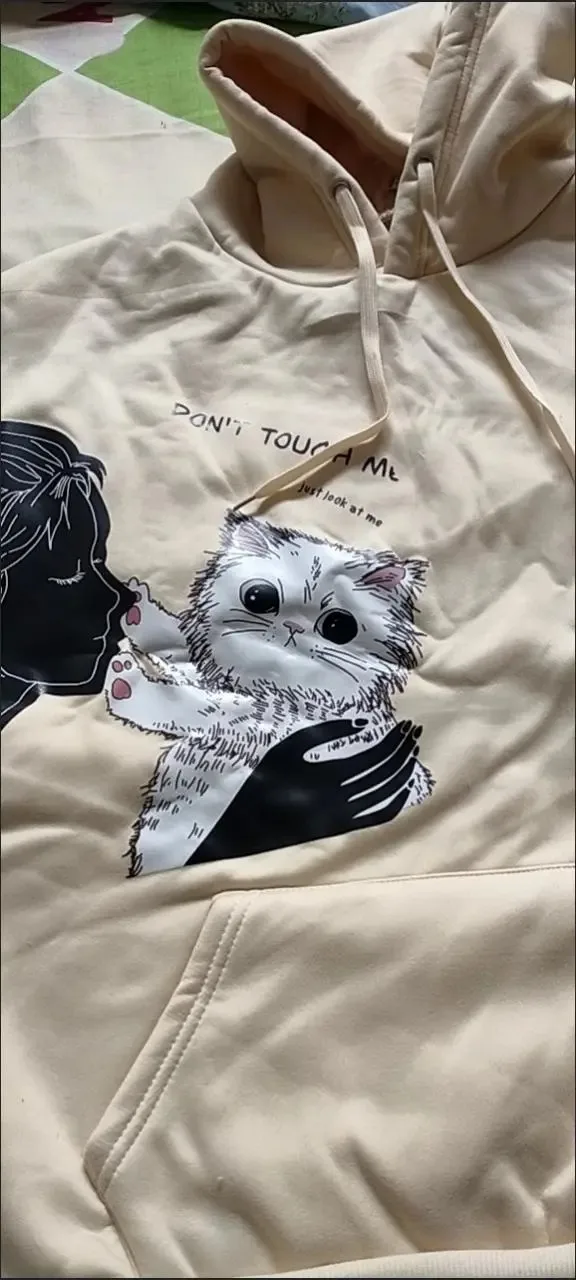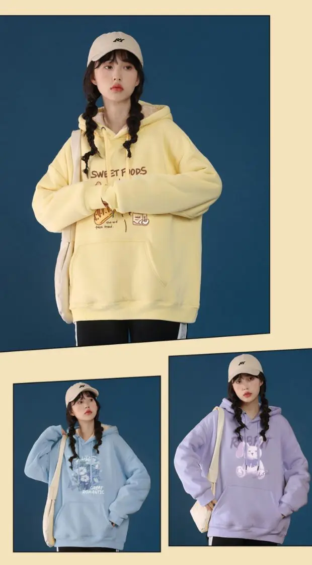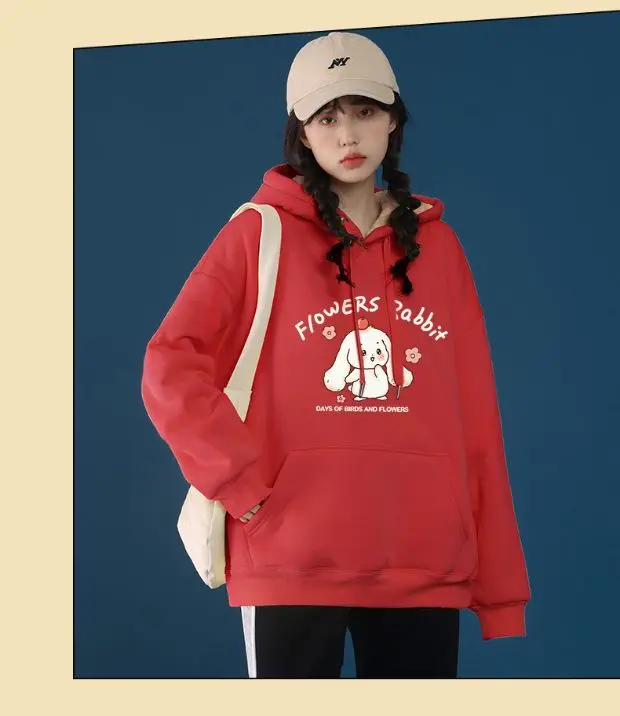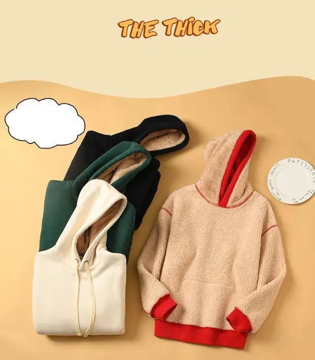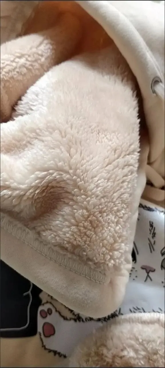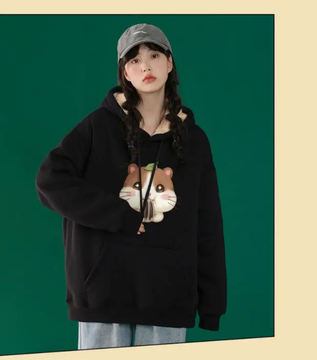 Lamb Velvet Sweatshirt Women New Kiss Cat Print Pocket Hooded Jacket Autumn Winter Y2k Clothes Thick Coat Fleece Pullover Thick