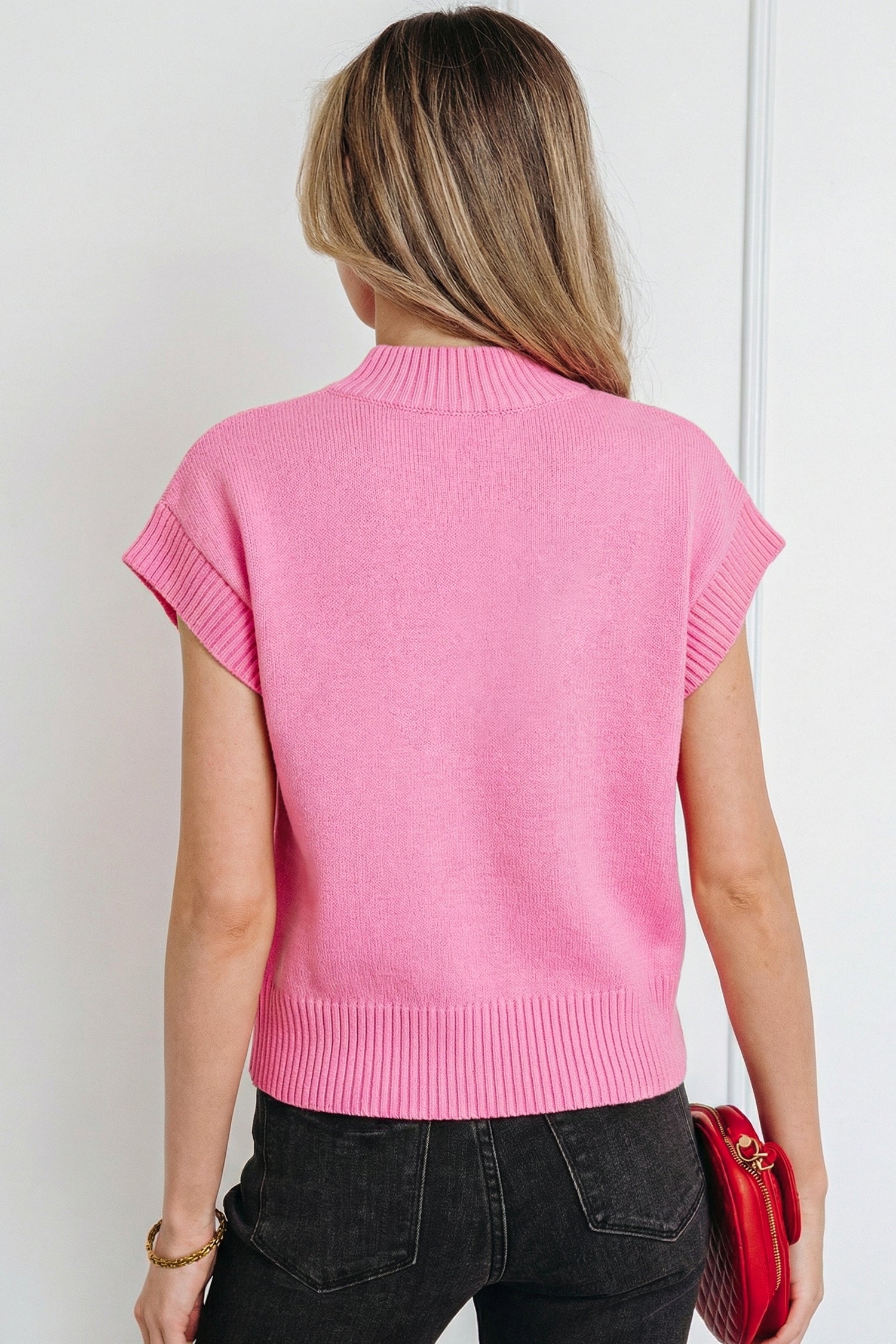 The cropped sweater pairs easily with high waist jeans for a casual chic vibe.