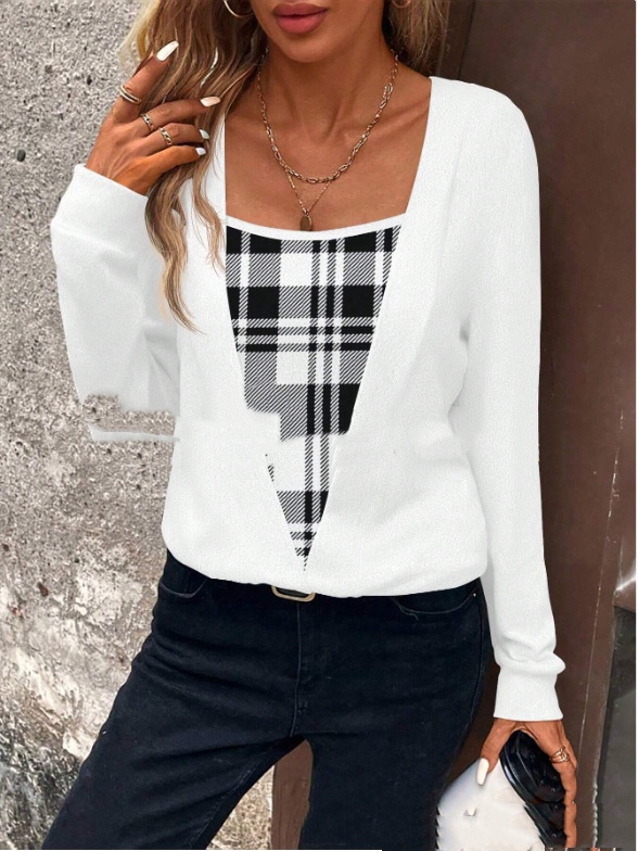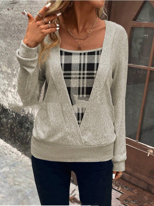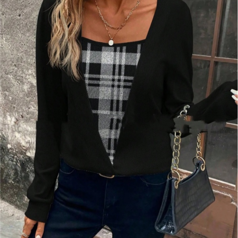 Plaid Printed Fake Two Pieces Fashionable And Comfortable Autumn And Winter Long Sleeves