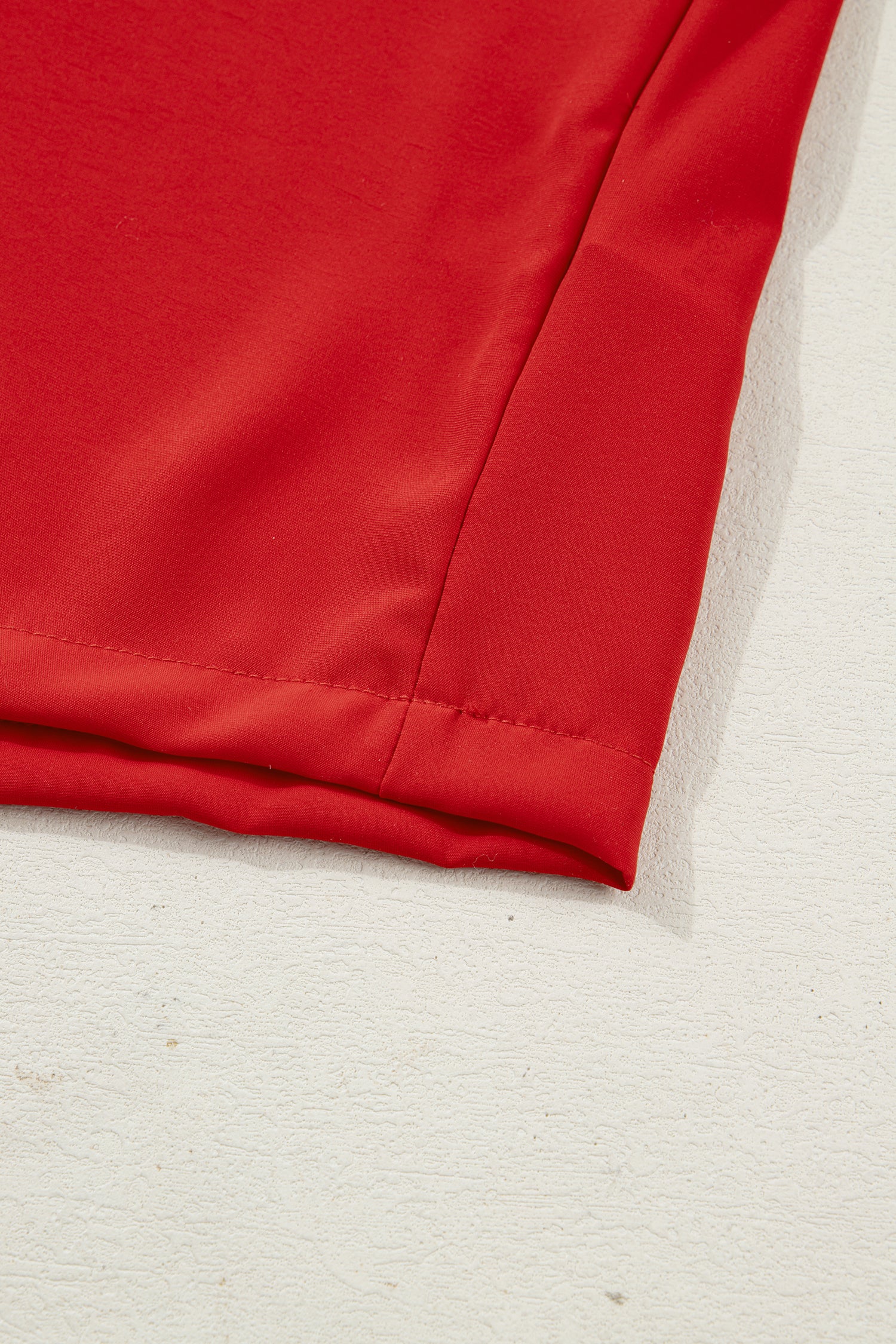 Racing Red Contrast Plaid Patchwork V Neck Long Sleeve Blouse