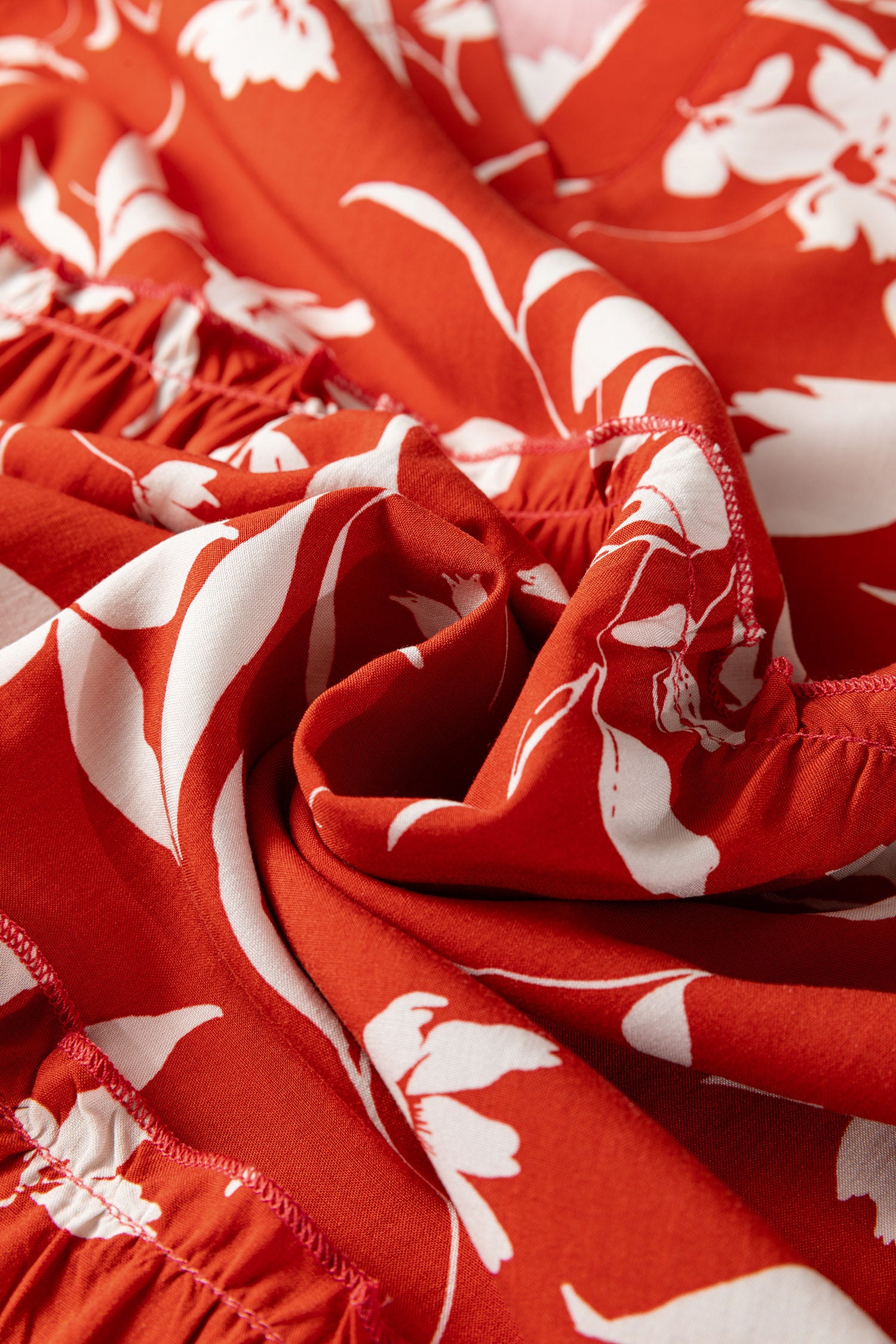 Featuring allover floral prints and lettuce trimming details.