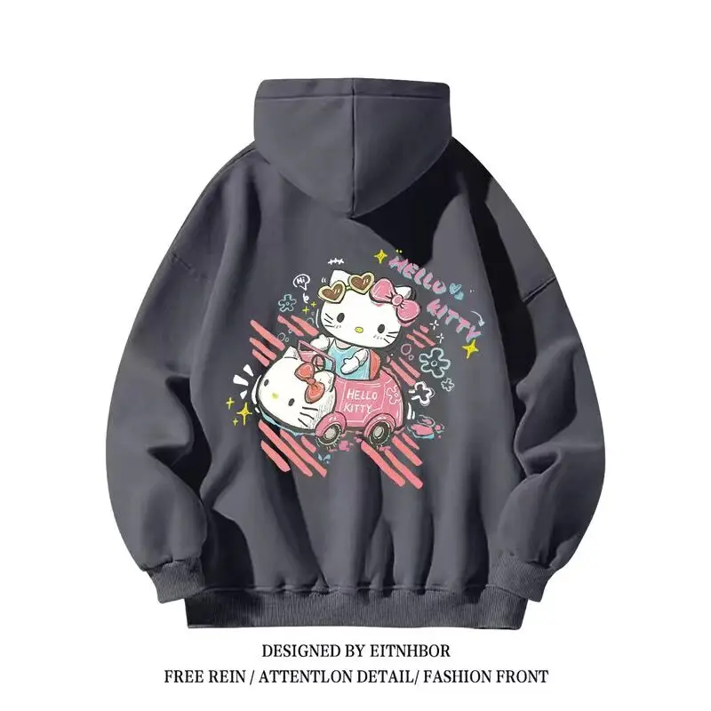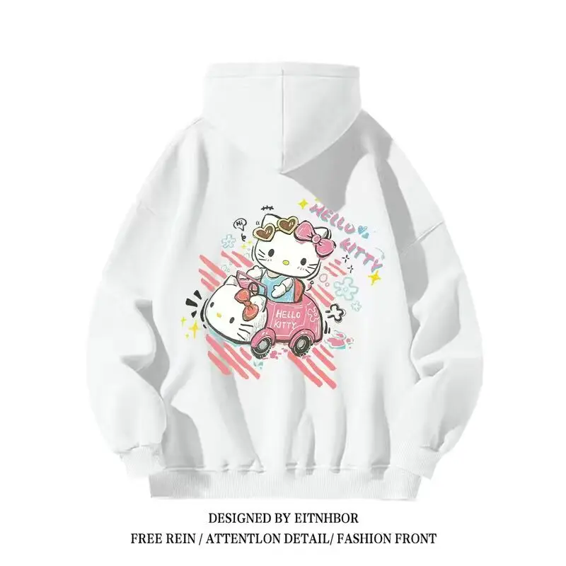 Sanrio-Hoodies estampa Hello Kitty para meninos e meninas, moletom de desenho animado, Y2K Tops, estilo formal casal, casaco casual solto, original, anos 2000