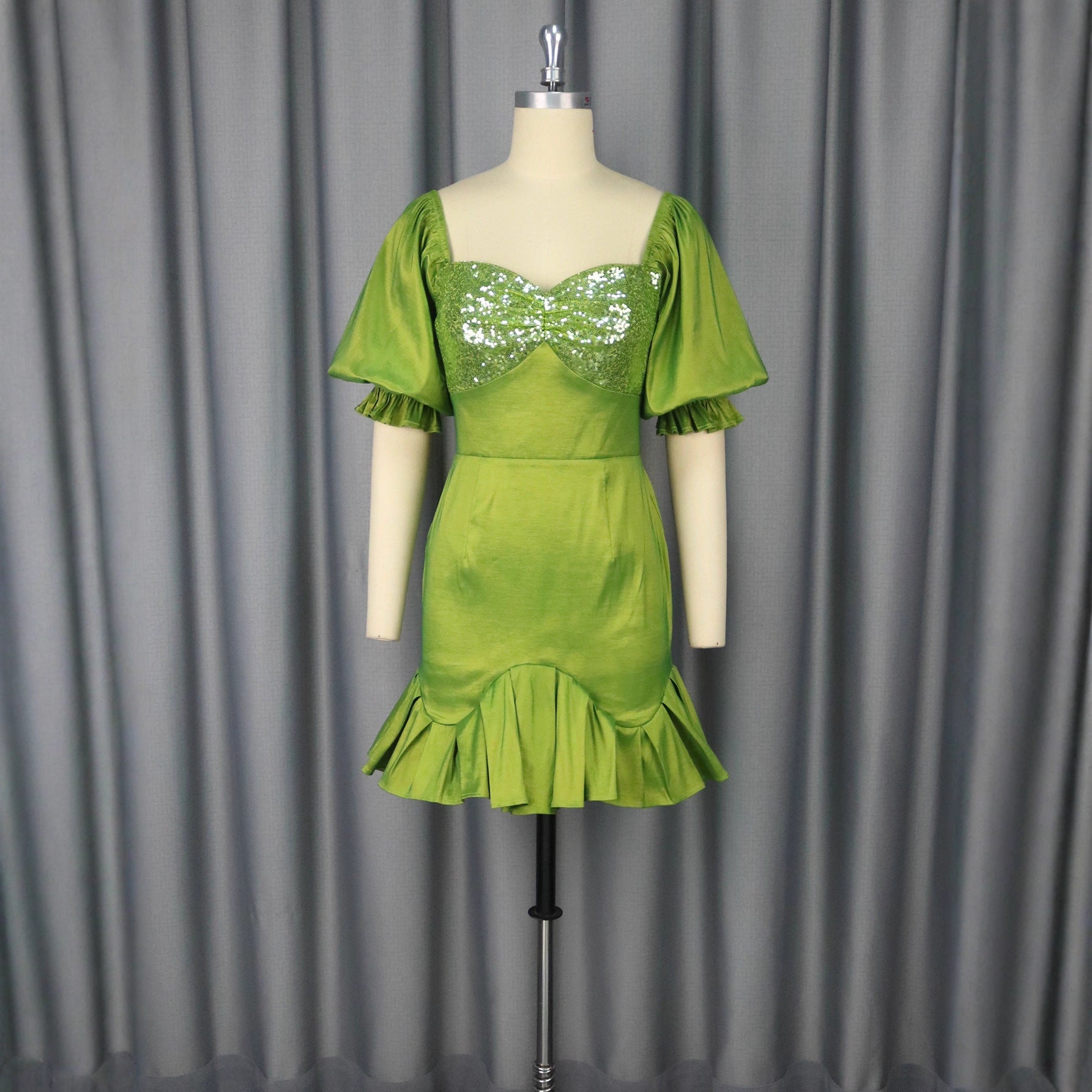 Sequin Stitching Ruffled Banquet Sheath Evening Dress