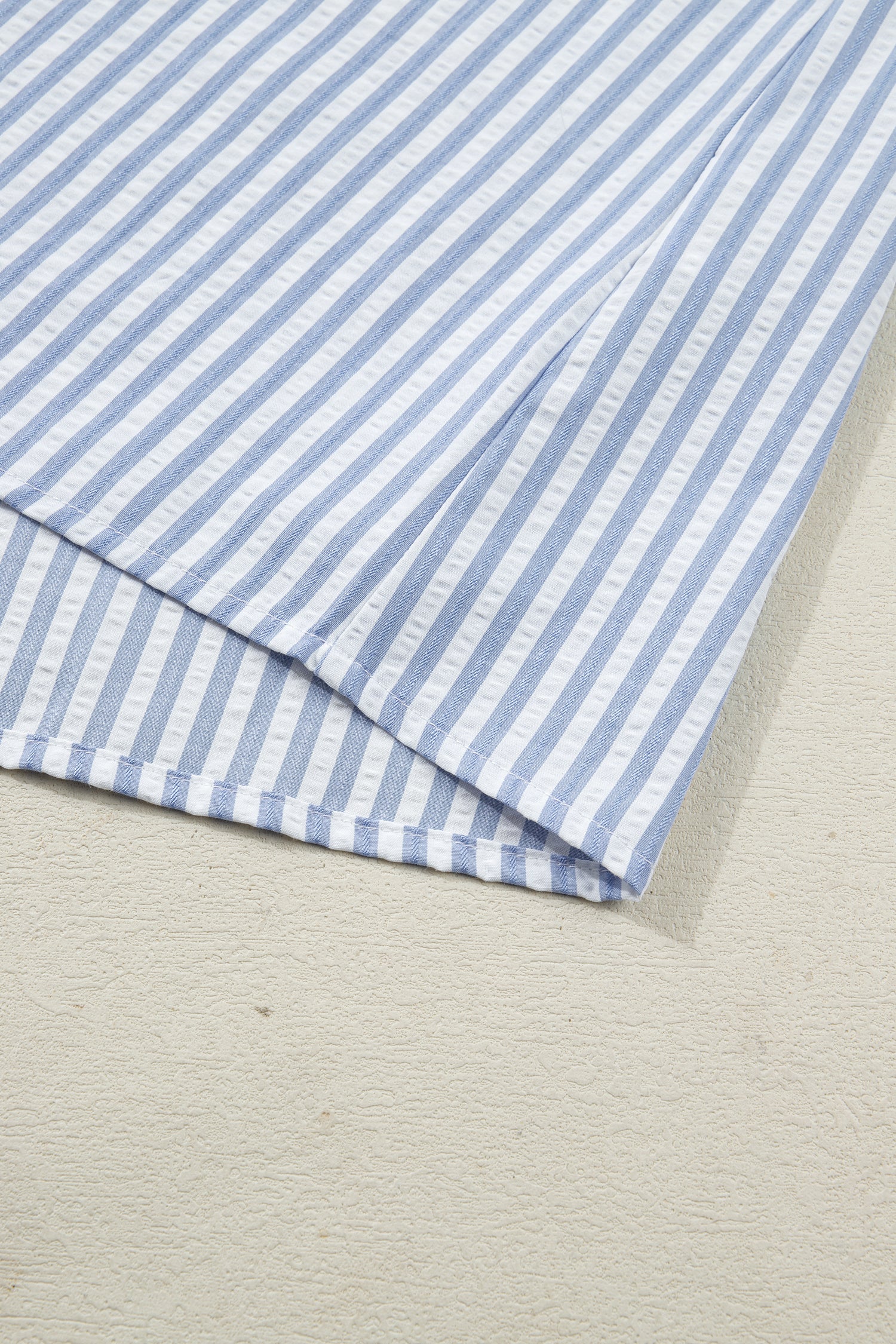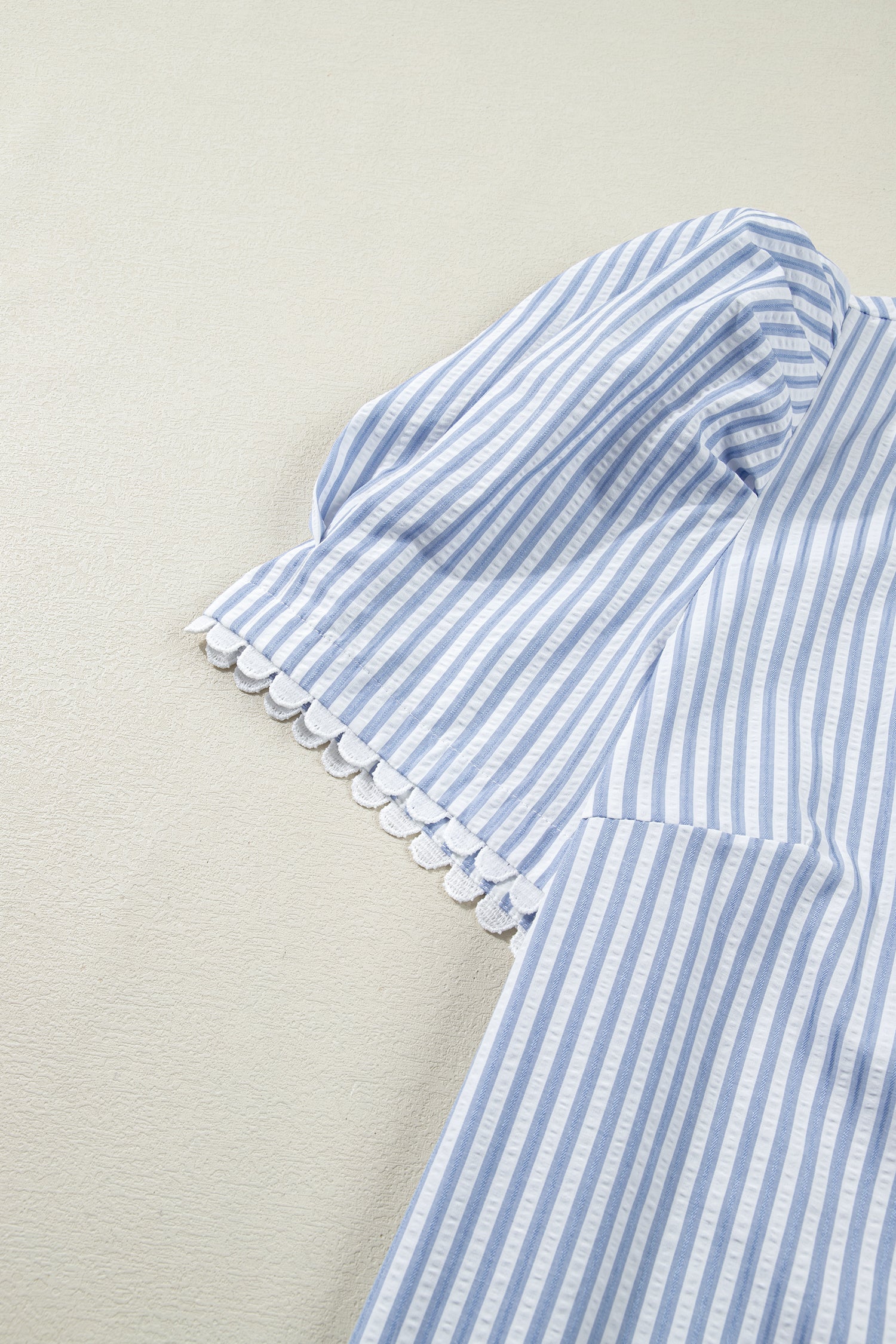 Sky Blue Stripe Plus Size Leopard Patchwork Collar Short Bubble Sleeve Blouse