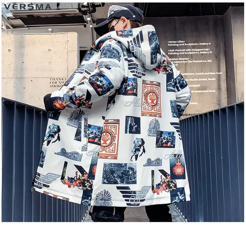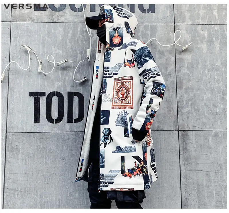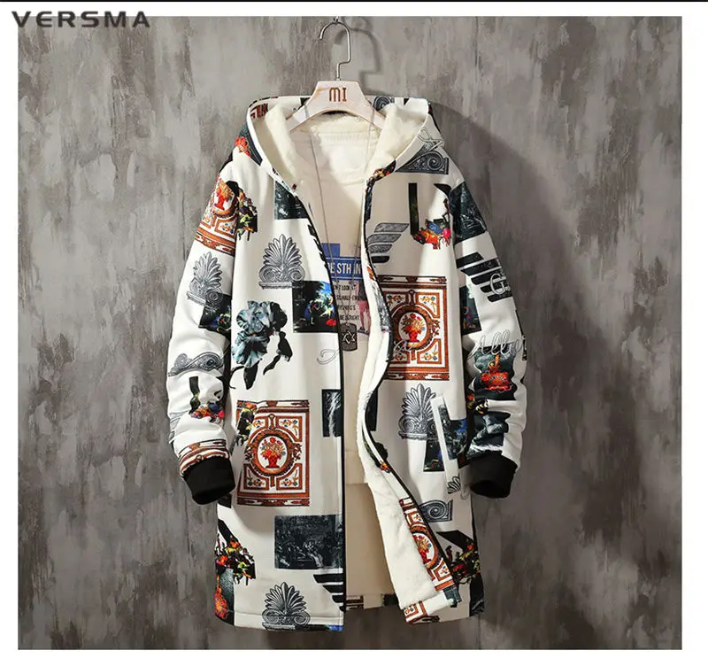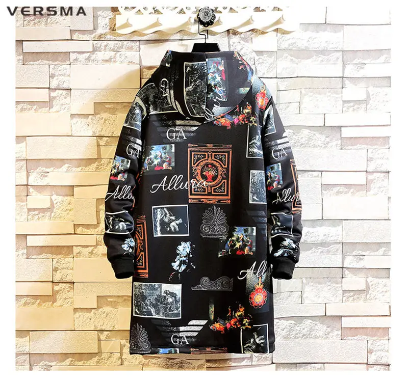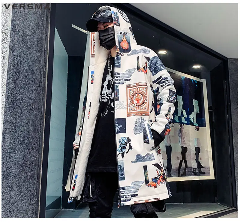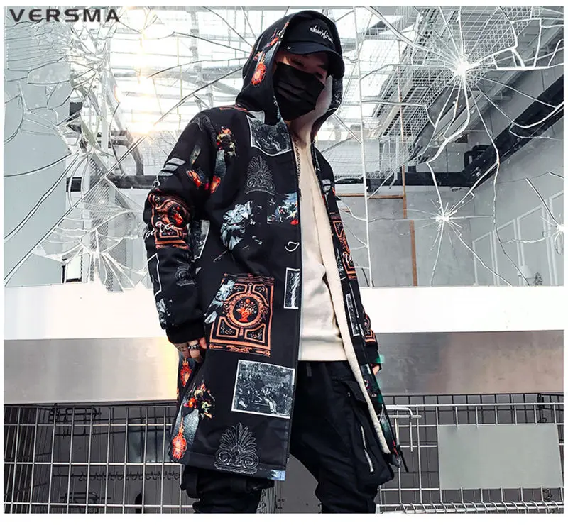 VERSMA Japanese Harajuku Print Vintage Mens Hooded Trench Coat Overcoat Men Hip Hop Winter Gothic Clothing Men 5XL Dropshipping