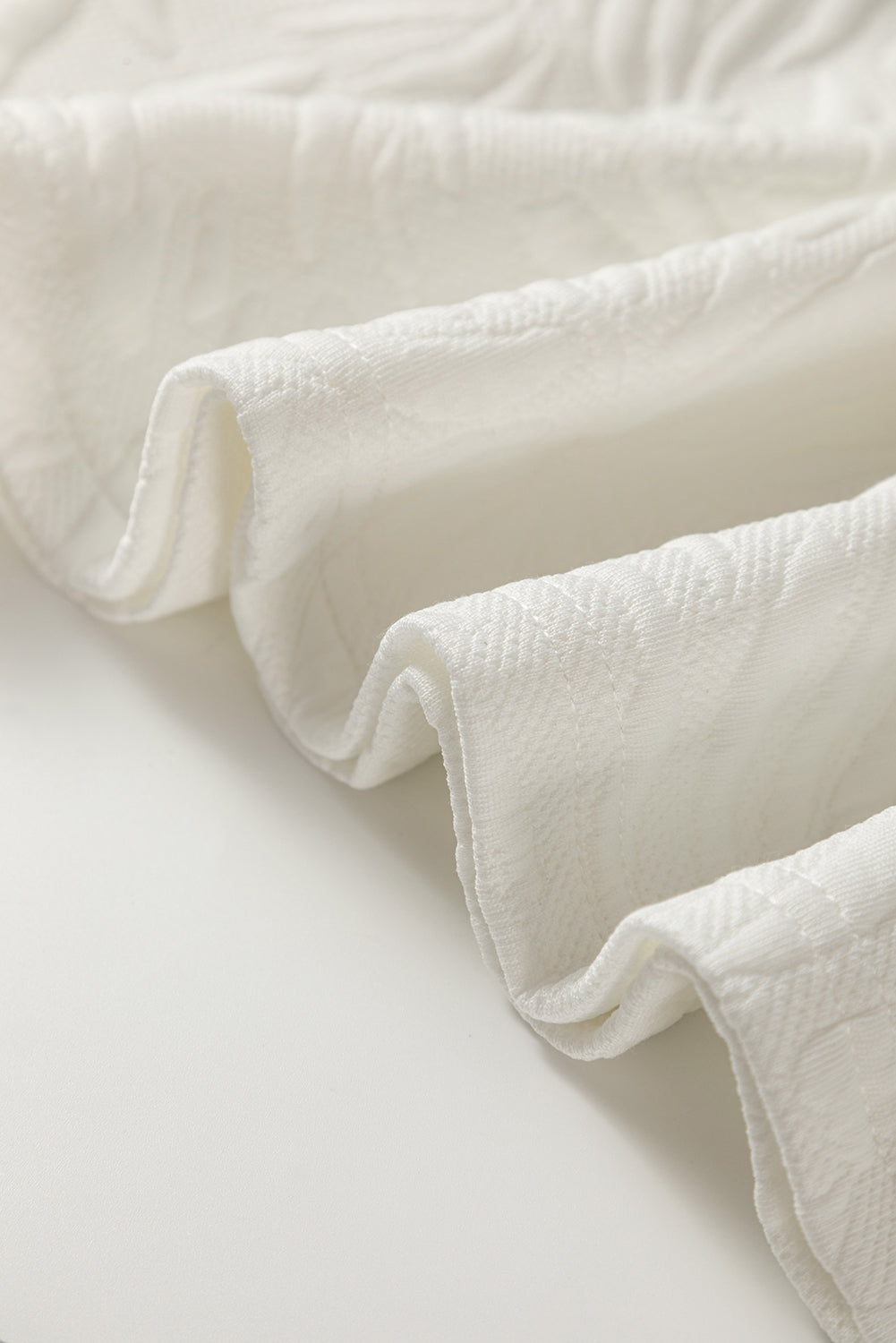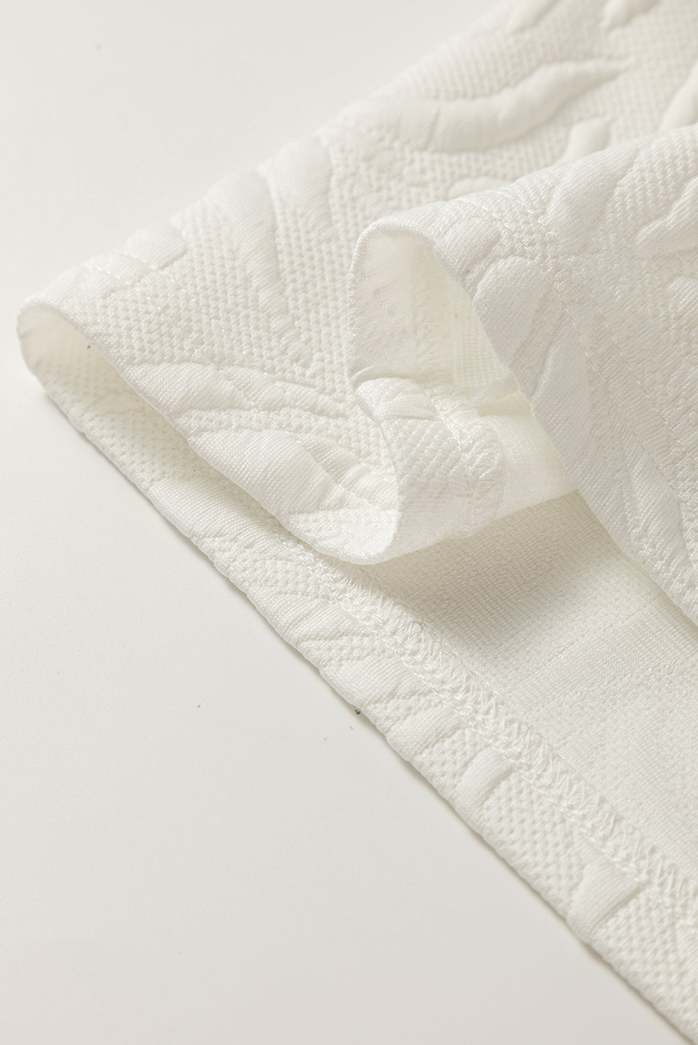 White Jacquard Textured Quarter Zipper Shift Mini Dress