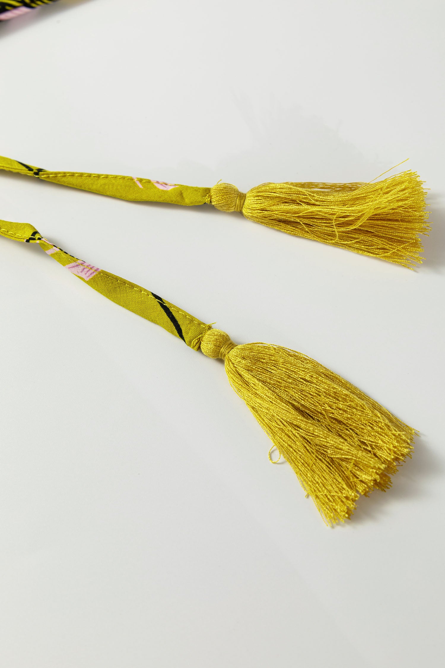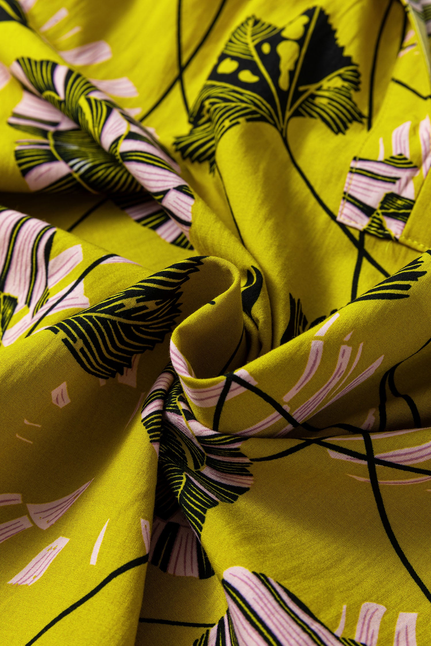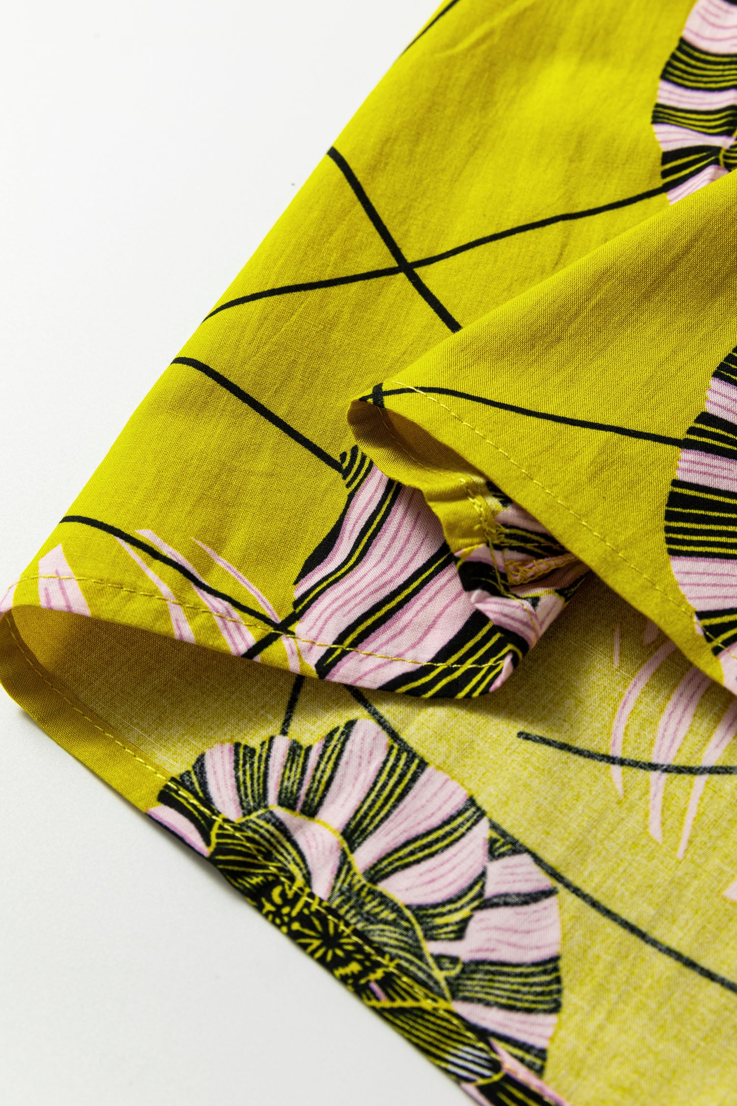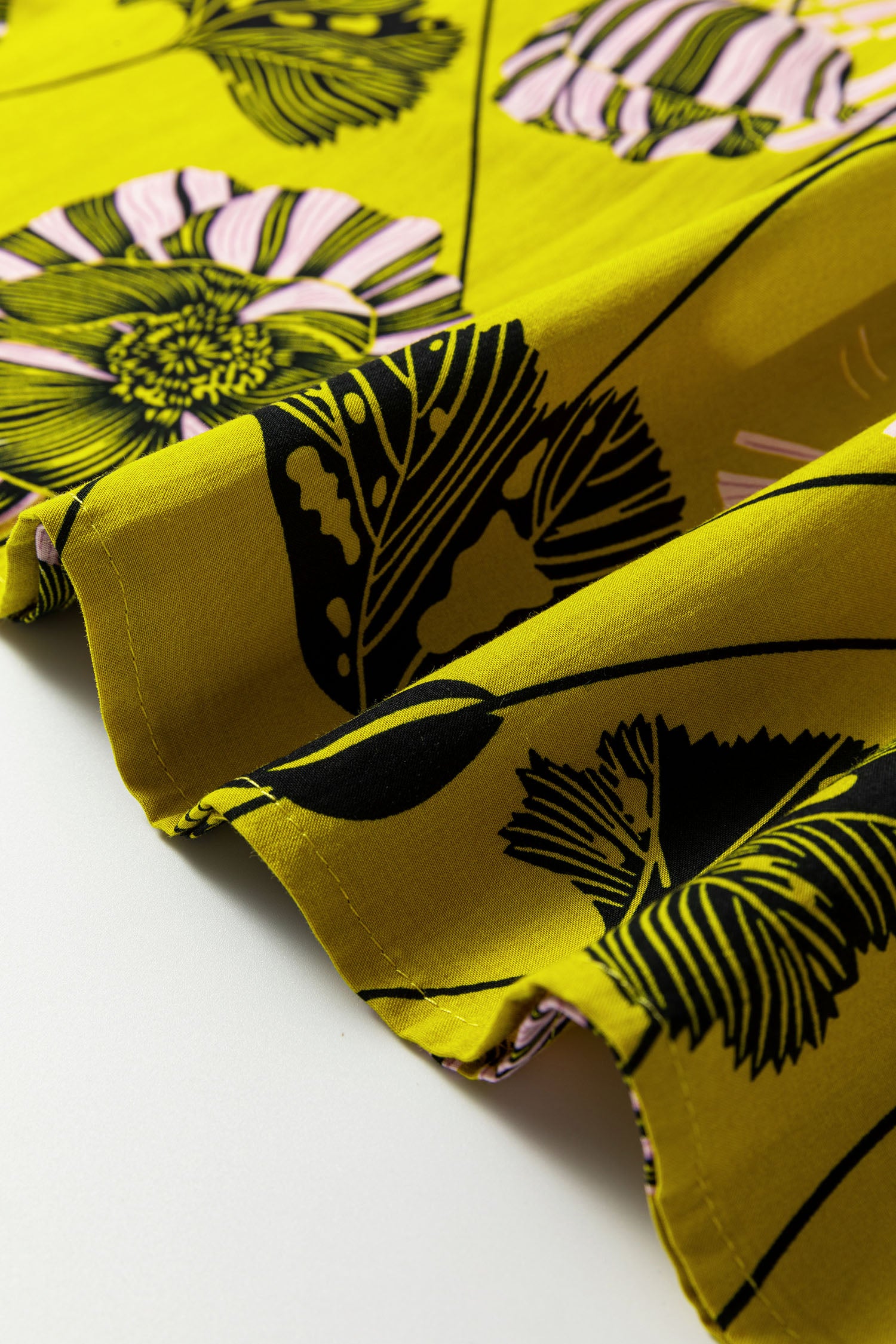 Yellow Vintage Floral V Neck Ruffle Trim Long Sleeve Blouse